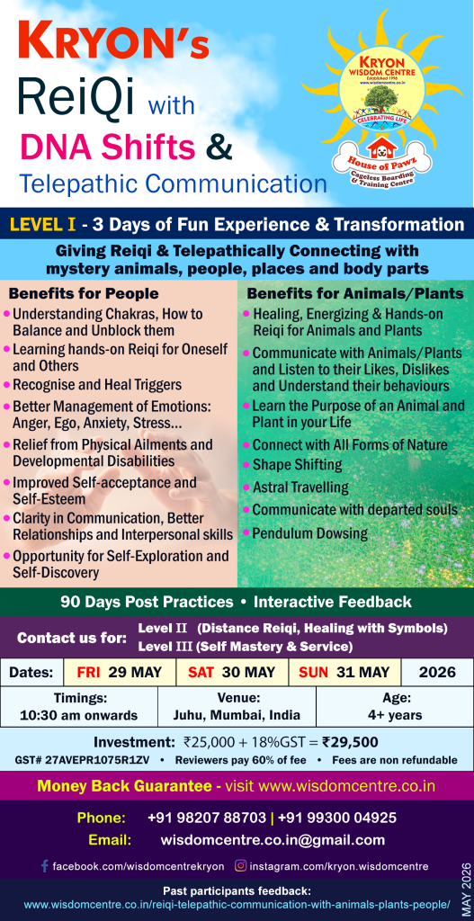 Established in 1998, Kryon Wisdom Centre Worldwide is a Mumbai-based training centre in India specializing workshops and sessions with the Human, Animal & Plant Kingdom. We offer programs and tools that combine ancient wisdom with innovative practices to address contemporary life challenges.